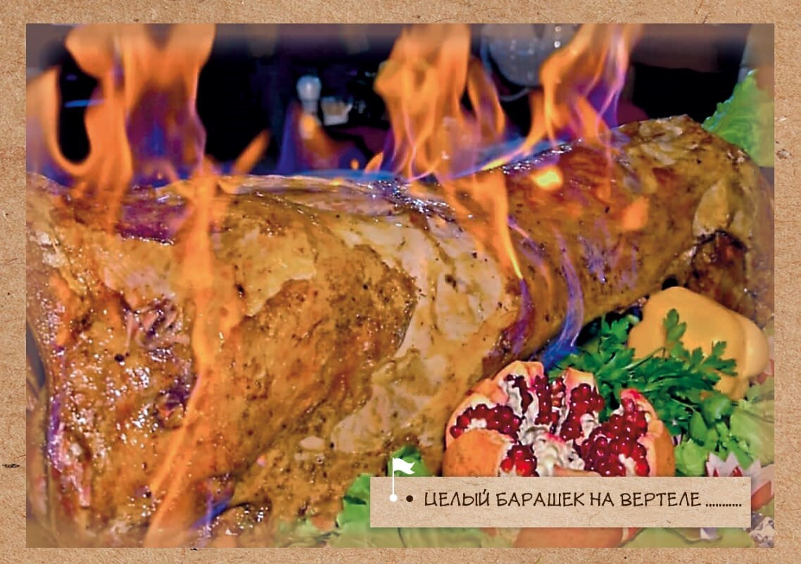 Мы предлагаем запеченного целиком барана с эффектной подачей и фирменной разделкой. А также доступны к заказу баранья нога, баранья лопатка, свиные ребра и курица.